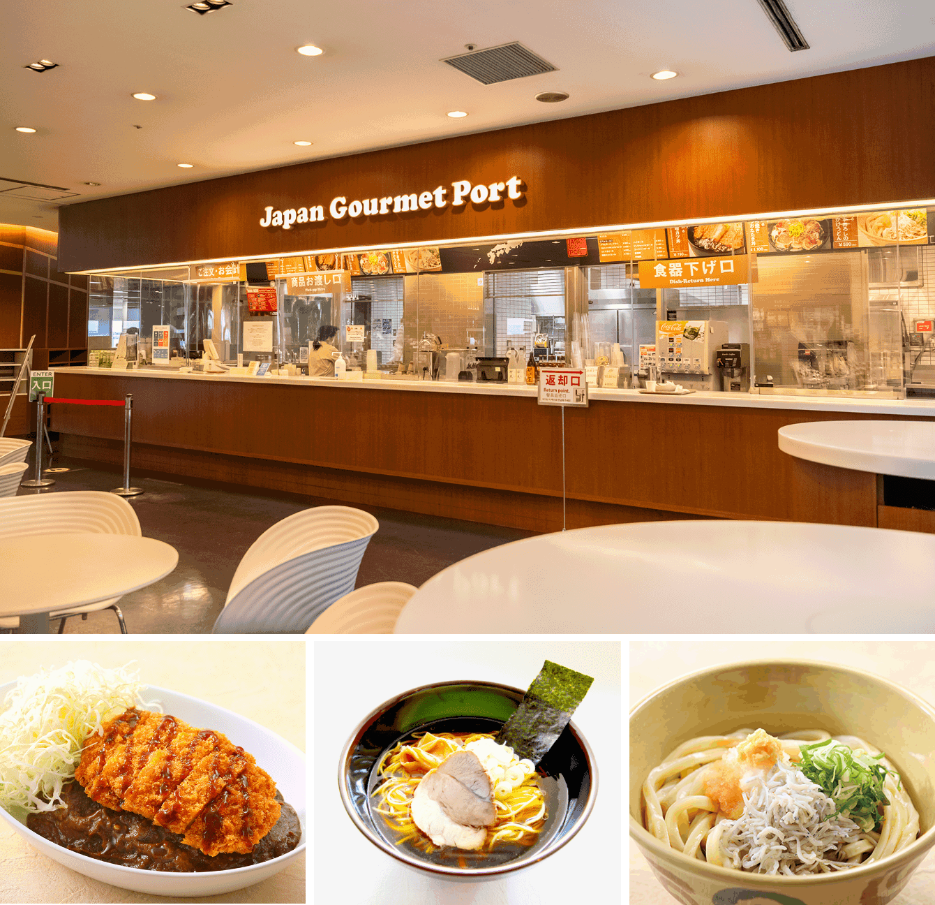 出発ゲートラウンジ内にある当店は、カレーやラーメンなど全国のご当地グルメを集結!搭乗前に気軽に召し上がっていただくことが出来ます。